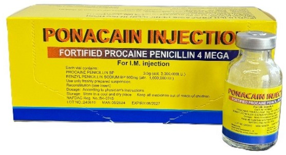 Procaine penicillin injection is the combination of benzylpenicillin (penicillin G) and the local anesthetic procaine, designed to deliver extended antibacterial action with minimal discomfort at the injection site. It is used in both human and veterinary medicine for a variety of infection types.[1][3][6]